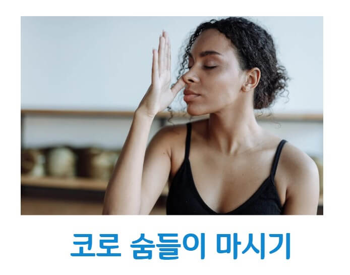 ② 코로 들이마시기: 입을 열고 코로 깊게 숨을 들이마십니다.